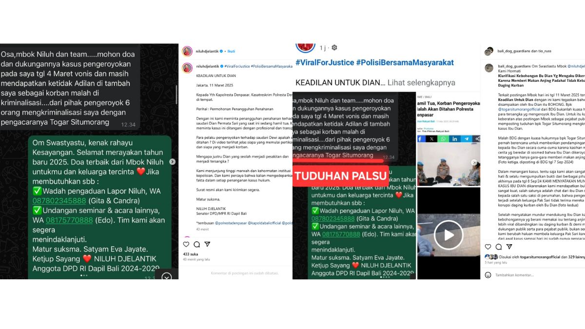Denpasar, 15 Maret 2025 – Dr. Togar Situmorang kembali melayangkan somasi kepada Senator DPD RI Bali, Ni Luh Djelantik, terkait dugaan penyebaran informasi palsu yang mencemarkan nama baiknya. Somasi ini merupakan respons atas unggahan Instagram @niluhdjelantik pada 11 Maret 2025 yang berisi tangkapan layar chat a.n Dian Permatasari yang menuding Dr. Togar Situmorang telah melakukan kriminalisasi terhadapnya. Tanpa mengcrosscek dan meninjau valid atau tidaknya informasi tersebut, Ni Luh Djelantik langsung memposting chat tersebut di akun Instagram miliknya.